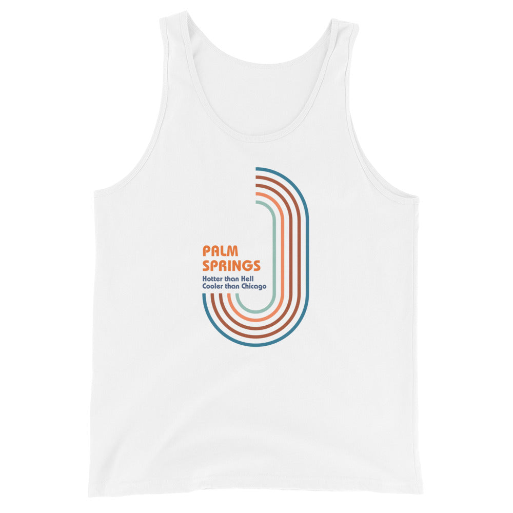 Whether you're drawn to its desert landscape, mid-century modern architecture or leisurely pace, you know Palm Springs is cooler than Chicago. This classic men's tank top is a soft, quality staple for your closet or a great gift for the Midwesterner in your life.